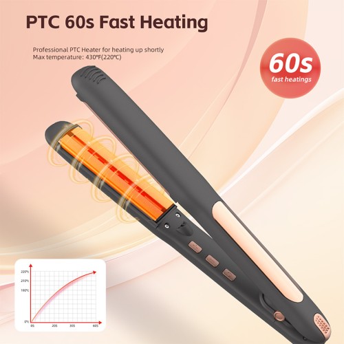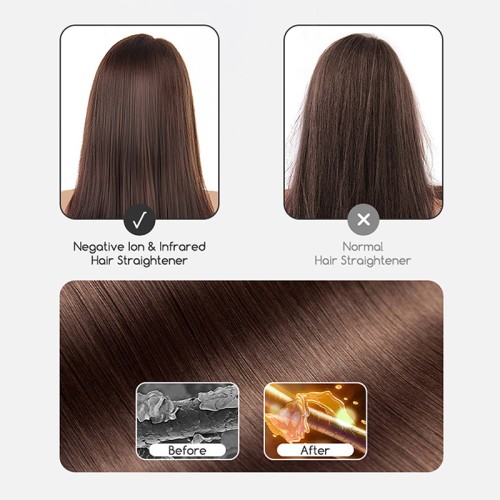 This straightener combines ceramic heating plates with infrared negative ion technology to both straighten hair and create curly styles. Featuring an LCD display, it allows real-time adjustment of multiple temperature settings to suit different hair types. Its lightweight, portable design makes it ideal for home use and travel, while rapid heating and overheat protection ensure safe and reliable operation.