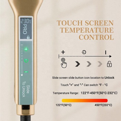 This hair straightener features high-quality ceramic-coated plates that heat up quickly and evenly, protecting hair strands from damage. Equipped with an LCD touchscreen, it supports multiple temperature settings with precise control to suit different hair types. With 45 watts of power and rapid heating capability, it offers convenient and efficient use. Its compact, portable design is ideal for home and travel use, while built-in overheat protection ensures safe operation.