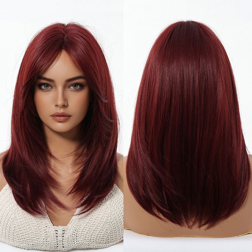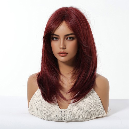 This wig is crafted from high-quality heat-resistant synthetic fibers, offering a soft, smooth texture with a natural feel and excellent heat tolerance. Its deep, captivating burgundy hue exudes modern style, making it perfect for everyday looks or cosplay. Featuring a natural-looking fringe, the wig boasts rich layering and moderate curls that create a bouncy, dynamic effect.