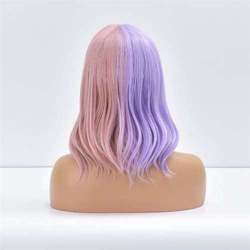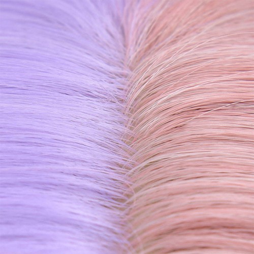 This wig features a gradient color scheme blending soft pink and purple as its primary visual highlight. The hues are vivid yet subtly understated, creating a gentle yet distinctive style. The overall design employs a serpentine wave pattern with full curls and dimensional texture, delivering ample layering for stage performances, photo shoots, or everyday styling. Constructed from high-temperature resistant fiber, the strands feel soft and smooth while offering excellent heat tolerance for basic styling adjustments within reasonable temperatures. The lace-free cap features a machine-woven construction paired with a breathable rose-mesh cap body for stable, lightweight wear. Its one-size-fits-most cap circumference accommodates most head shapes, ensuring simple and convenient application.