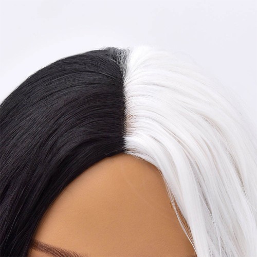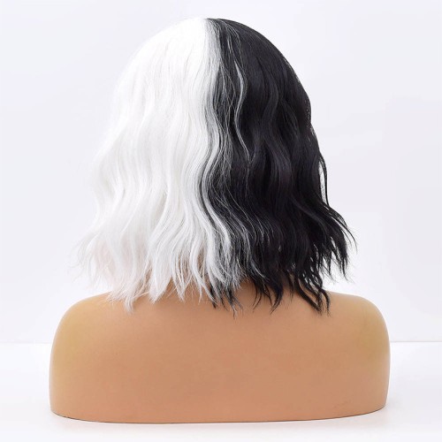 This wig features high-temperature synthetic fibers with vivid color contrast for striking visual impact. Its short, wavy style offers natural lightness, while the neatly trimmed fringe effectively frames the face. Constructed with a lace-free, machine-woven structure, it incorporates a breathable one-size-fits-all cap for comfortable, secure wear. The 150% density delivers full yet lightweight volume, ensuring a harmonious and natural overall appearance.