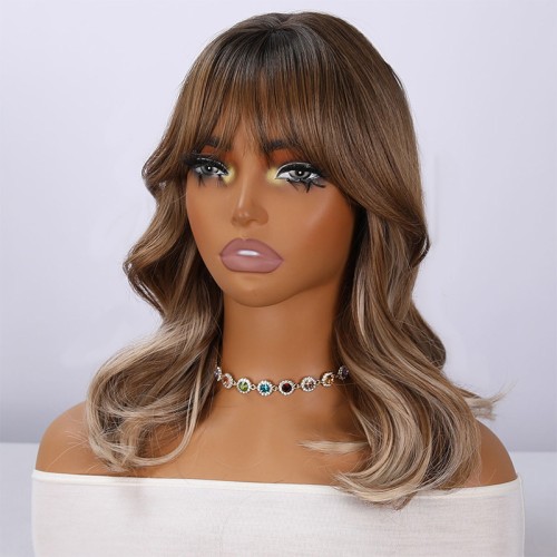 This wig is crafted from high-temperature synthetic fiber, offering a soft, natural feel that's heat-resistant and easy to style. The short curly design features natural bangs and showcases a trendy brown ombre effect, adding dimension and volume. The lace front cap design comes in one size that fits most head shapes. With 150% density, it provides comfortable and secure wear, perfect for everyday use and cosplay looks.