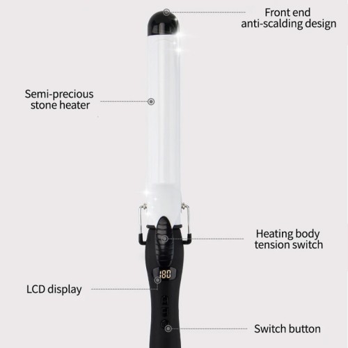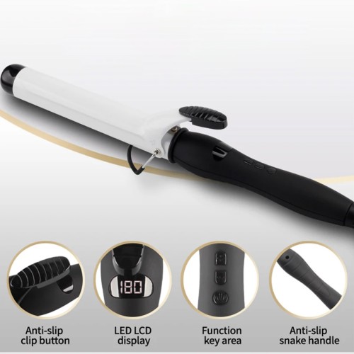 This curling iron combines multiple functions—curling, blow-drying, and straightening—crafted from high-quality stainless steel with an efficient metal heater suitable for all hair types. Featuring an LCD display that shows real-time temperature, its 3-level temperature control meets diverse styling needs. Negative ion technology effectively reduces static, leaving hair smooth and shiny, while rapid heating ensures efficient styling.