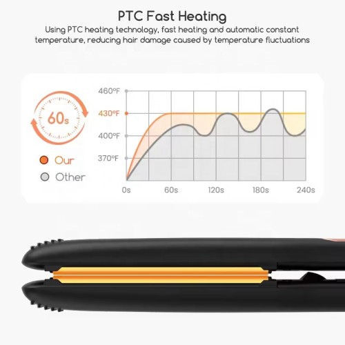 This straightener features high-quality titanium plates combined with infrared heating and negative ion technology to quickly straighten hair while locking in moisture for smooth, silky strands. Equipped with an LCD display that clearly shows temperature settings, it offers multiple heat levels suitable for various hair types. Its lightweight, portable design makes it ideal for both home and professional salon use.