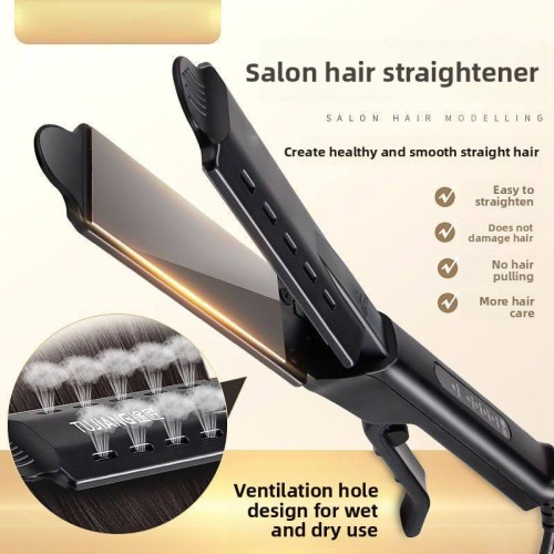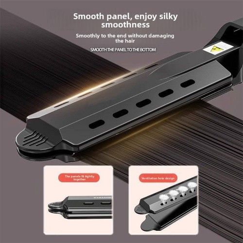 This straightener combines aluminum plate heating with efficient styling capabilities, effortlessly achieving straight or curly looks. Featuring an LED display that shows real-time temperature, it ensures consistent heat control and precise heat adjustment for different hair types. Its lightweight design is ideal for home use, while the heat-resistant plastic casing guarantees safety, durability, and simple operation.