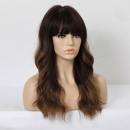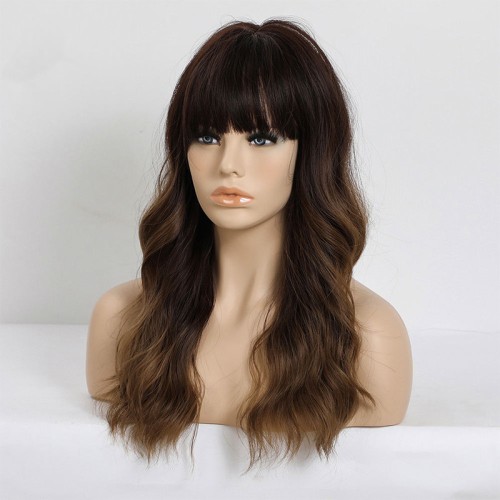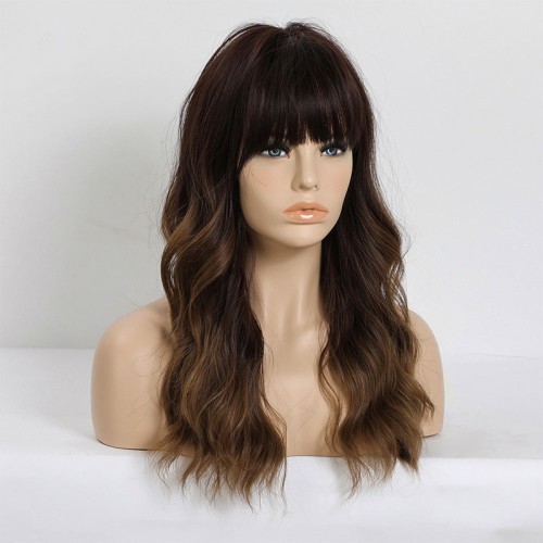 Dark brown to golden gradient bangs wig